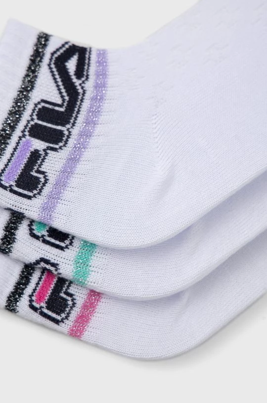 Κοντές κάλτσες για παιδιά από τη συλλογή Fila. Μοντέλο από ελαστικό, με μοτίβο ύφασμα. Στο σετ τρία ζευγάρια.