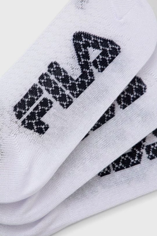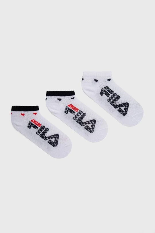 Κοντές κάλτσες για παιδιά από τη συλλογή Fila. Μοντέλο από ελαστικό, με μοτίβο ύφασμα. Στο σετ τρία ζευγάρια.