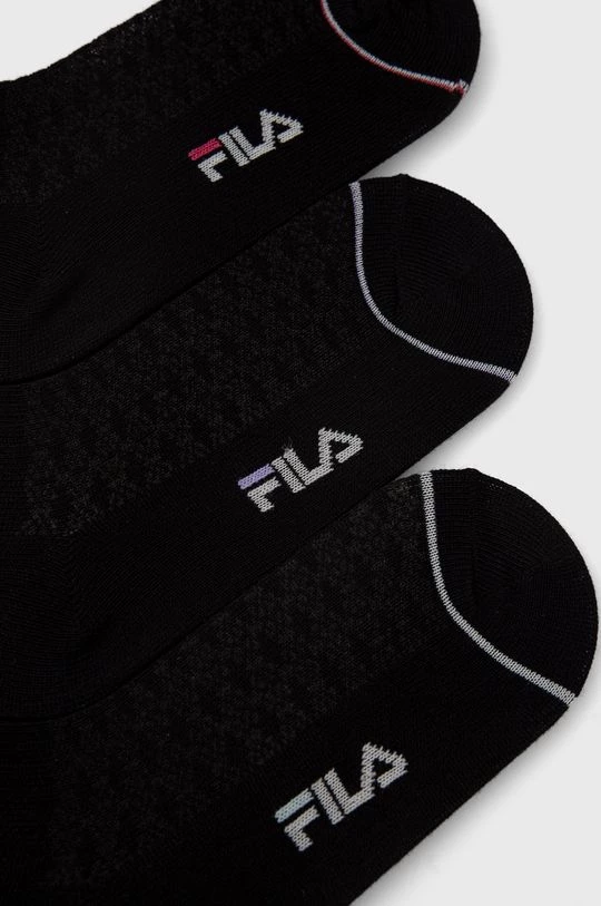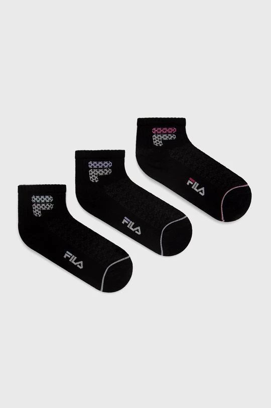 Κοντές κάλτσες για παιδιά από τη συλλογή Fila. Μοντέλο από ελαστικό, με μοτίβο ύφασμα. Στο σετ τρία ζευγάρια.