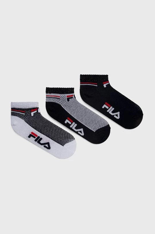 Κοντές κάλτσες για παιδιά από τη συλλογή Fila. Μοντέλο από ελαστικό, με μοτίβο ύφασμα. Στο σετ τρία ζευγάρια.