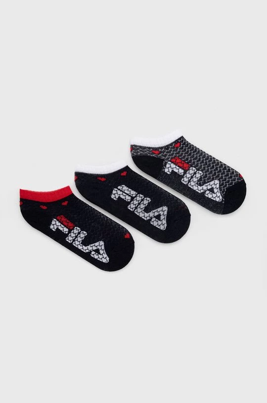Κοντές κάλτσες για παιδιά από τη συλλογή Fila. Μοντέλο από ελαστικό, με μοτίβο ύφασμα. Στο σετ τρία ζευγάρια.