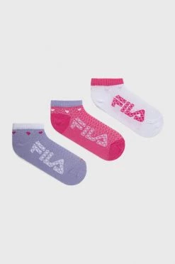 Κοντές κάλτσες για παιδιά από τη συλλογή Fila. Μοντέλο από ελαστικό, με μοτίβο ύφασμα. Στο σετ τρία ζευγάρια.