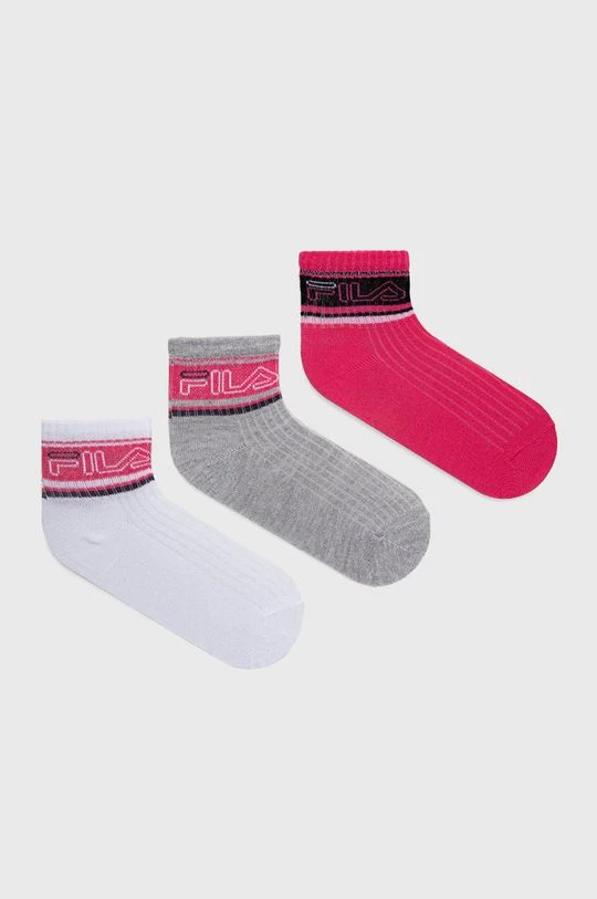 Κοντές κάλτσες από τη συλλογή Fila. Μοντέλο από ελαστικό, με μοτίβο ύφασμα. Στο σετ τρία ζευγάρια.